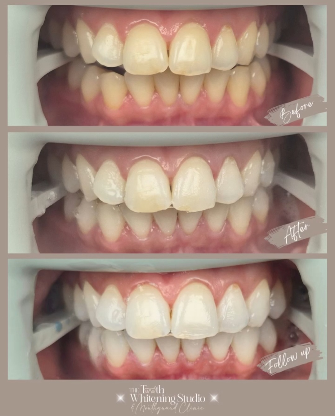 These images are unedited and shown with patient consent. Results are specific to each individual and will vary. Suitability, outcomes, and longevity depend on personal circumstances. This information is general in nature and does not replace personalised advice. A consultation with an oral health professional is required to determine if teeth whitening is appropriate for you.